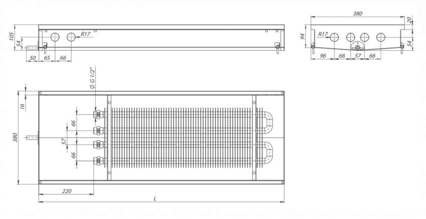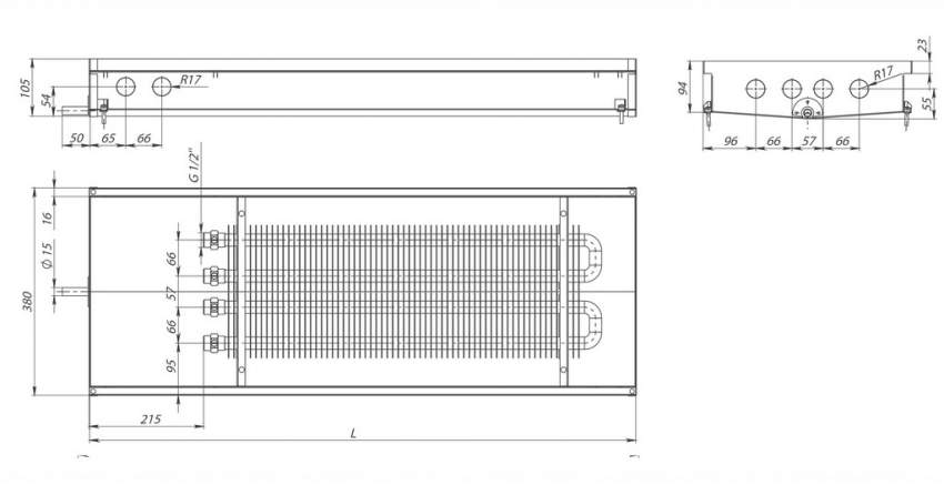 Внутрішньопідлоговий водяний конвектор S2 (C2) Hydro 105