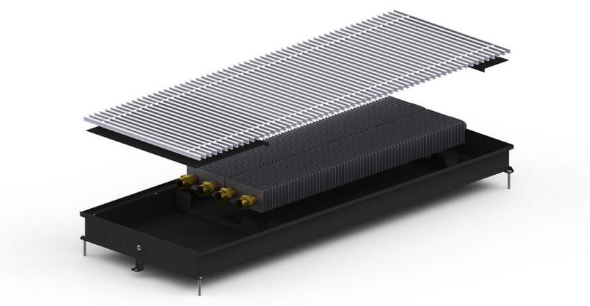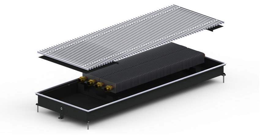 Внутрішньопідлоговий водяний конвектор M2 (C2) Inox / Black 65