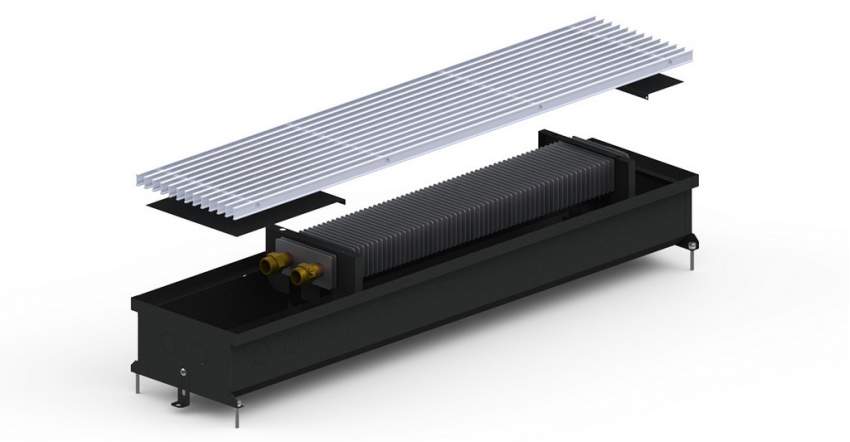 Внутрішньопідлоговий водяний конвектор S (C) Inox / Black 120