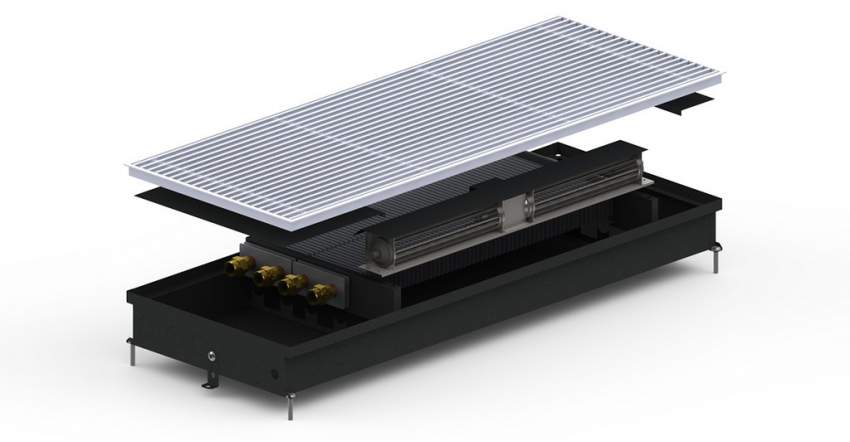 Внутрішньопідлоговий водяний конвектор SV2 (CV2) Inox / Black 90